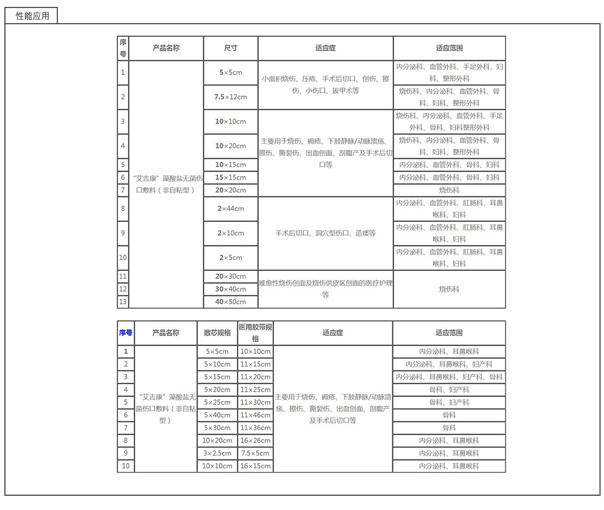 “艾吉康”藻酸鹽醫用敷料是一種由褐藻中提取的海藻酸鹽經過濕法紡絲、無紡布加工、切割包裝、滅菌等工藝加工后制成的無菌醫用敷料,具有在吸收傷口滲出液后形成凝膠的獨特性能。“艾吉康”藻酸鹽醫用敷料通過為創面提供濕潤的愈合環境加快傷口的愈合,對難愈性慢性創面的護理有良好的療效,其成膠性可方便將敷料從傷口揭除,對難愈性慢性創面的護理有良好的療效。